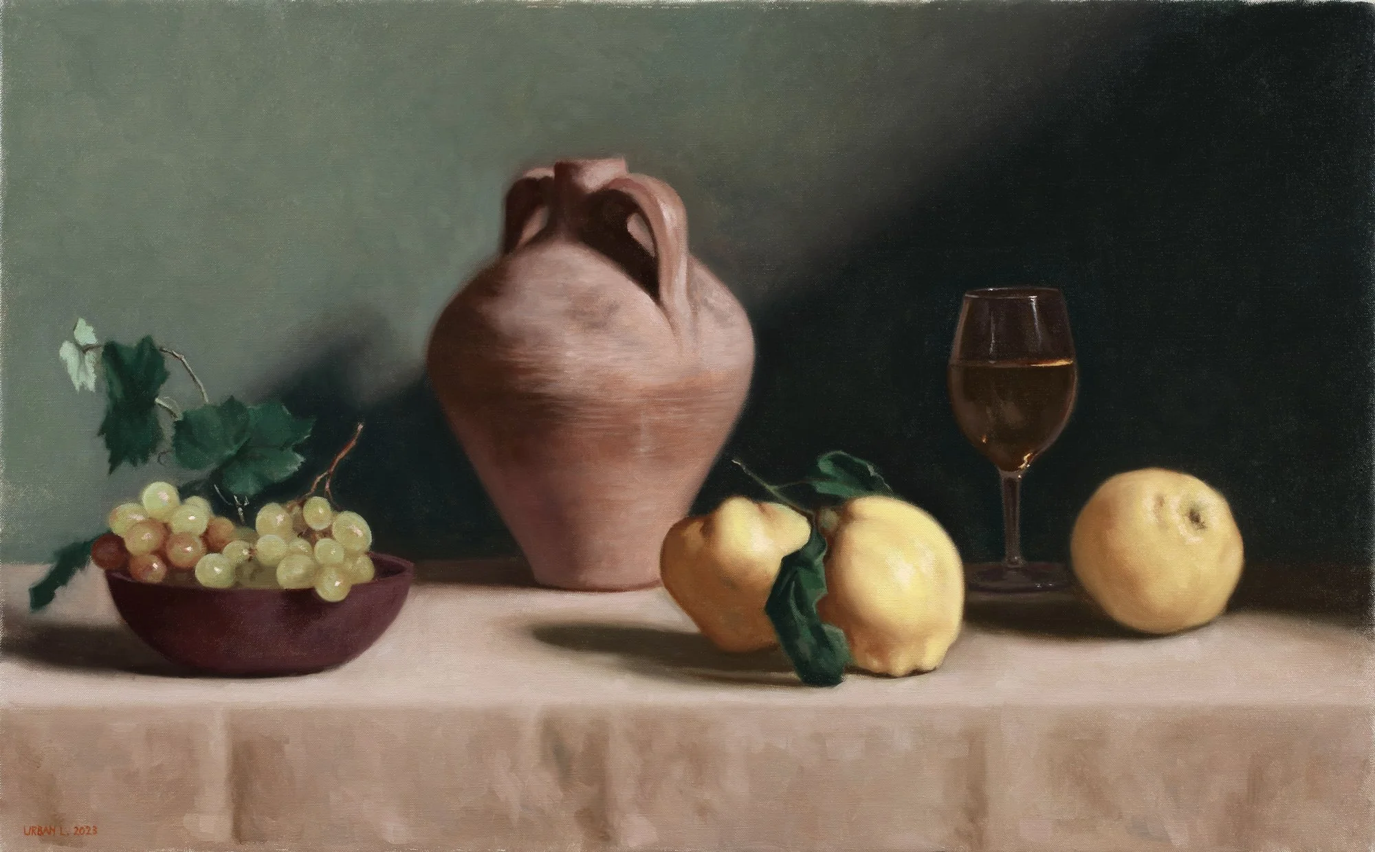 Larsson’s still-lifes have been exhibited extensively in galleries and museums and are in private collections in Europe and in the USA. Given the great variety of his themes, the still-lifes are all characterized by careful and harmonious compositions and a subtle play of light and shade. The unity of effect is achieved by subordinating the individual elements to the impression of the whole. Urban has also been commissioned to paint personalized still-lifes with objects selected by the client and composed by the artist.